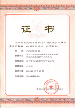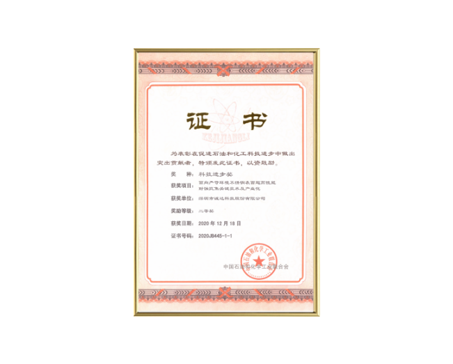 中国石油和化学工业联合会科技进步奖证书