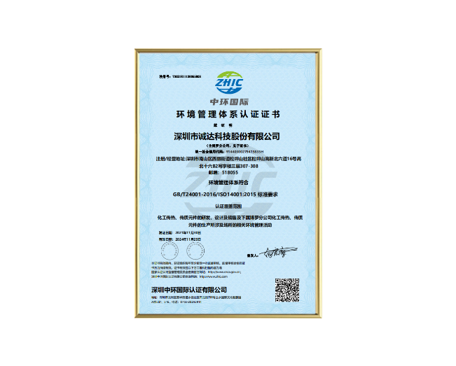ISO14001环境管理体系认证证书