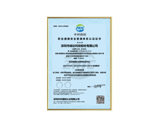 ISO45001职业健康安全管理体系认证证书