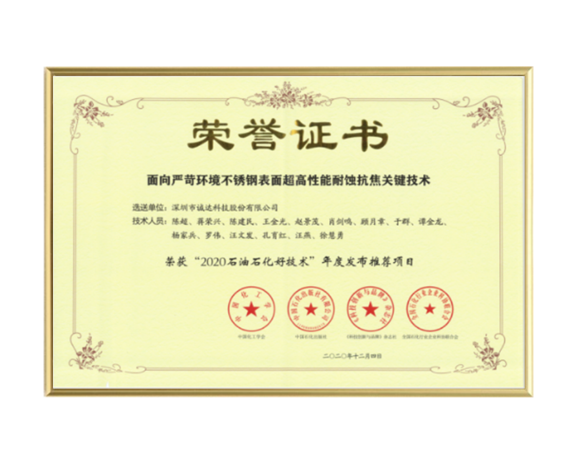 “2020石油石化好技术”证书
